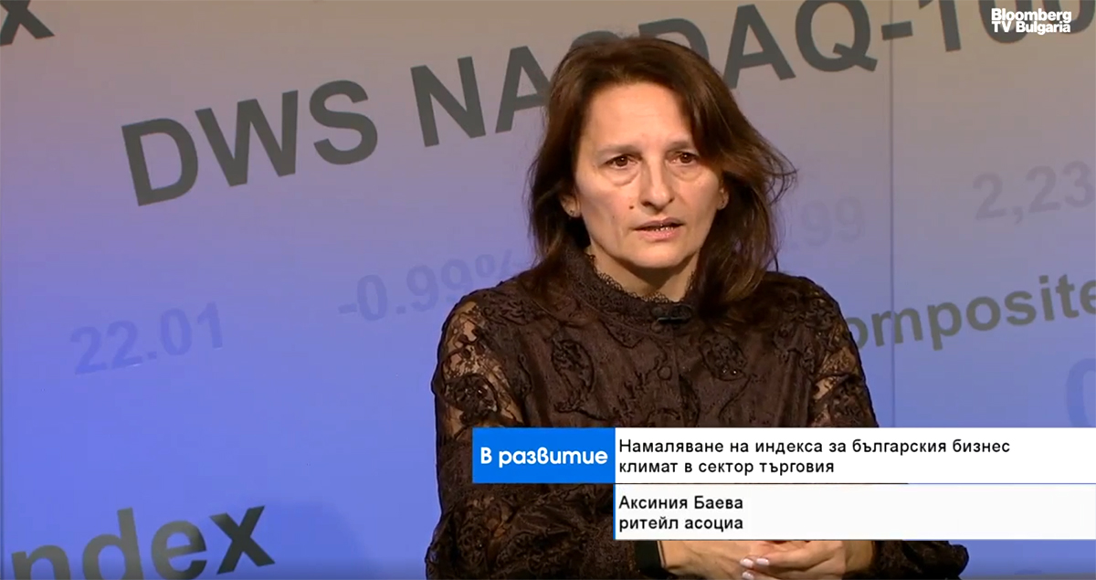 Купувачите у нас намаляват, конкуренцията между търговците става все по-свирепа - интервю на Аксиния Баева заместник-председател на Българската ритейл асоциация и Иво Желев (основател на ЕСТАТ), във „В развитие“ - Bloomberg TV Bulgaria.